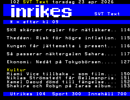Utrikes 104  Sport 300  Innehåll 700