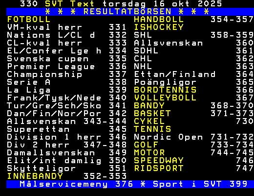 Målservicemeny 376 * Sport i SVT 399