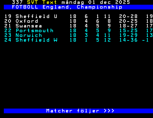 19 Sheffield U   18  6  1 11  20-28  19