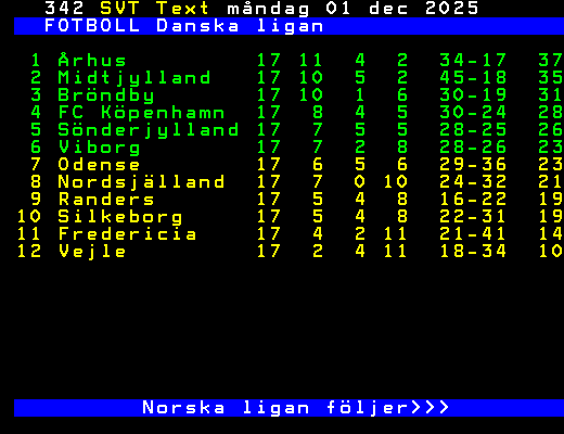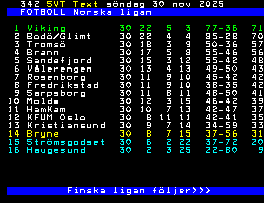 12 KFUM Oslo     30  8 11 11  42-41  35