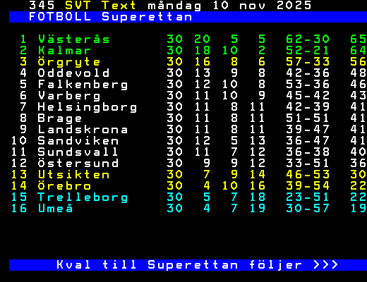 11 Sundsvall     30 11  7 12  36-38  40