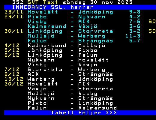 30/11 Linköping  - Storvreta    3-2  SD