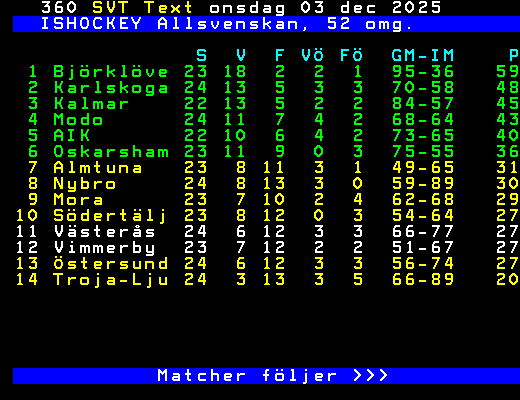 2 Karlskoga 24 13  5  3  3  70-58   48
