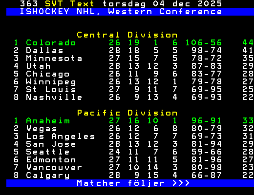 ISHOCKEY NHL, Western Conference