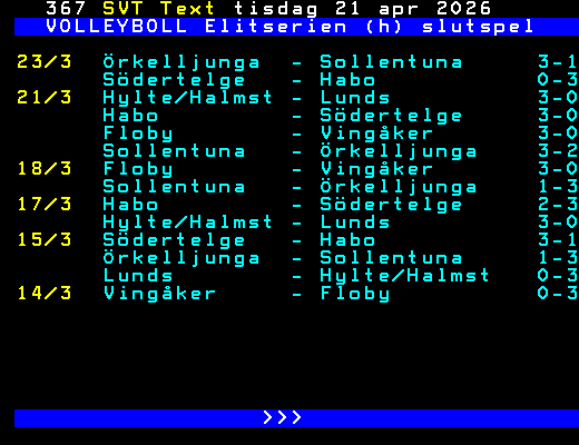17/3  Habo         - Södertelge     2-3