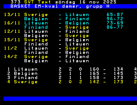 13/11 Sverige   - Litauen     65-87