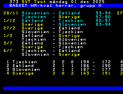 28/11 Slovenien - Estland     93-94  EF