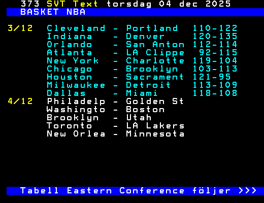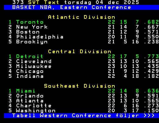 Tabell Eastern Conference följer >>>