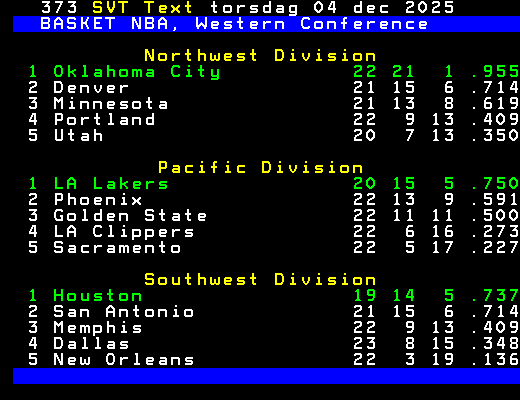 Tabell Western Conference följer >>>