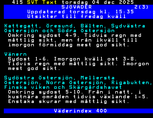 Sydost 1-6. Imorgon kväll ost 3-8.