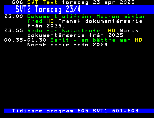 Tidigare program 605 SVT1 601-603+Dela 06:05