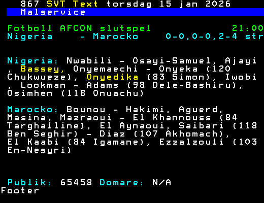 Nigeria    - Marocko    0-0,0-0,2-4 str