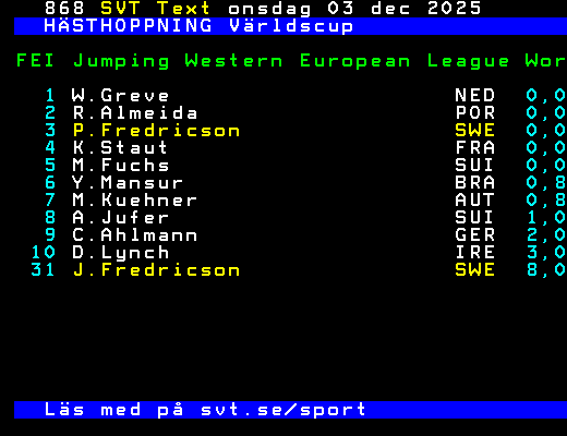 3 P.Fredricson               SWE  0,0