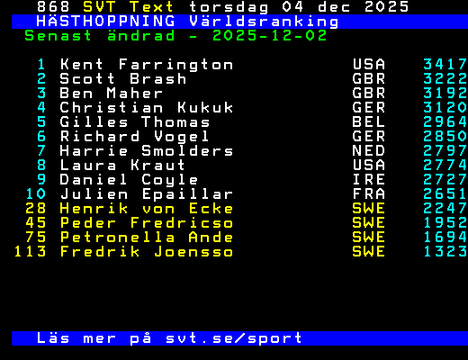 HÄSTHOPPNING Världsranking
